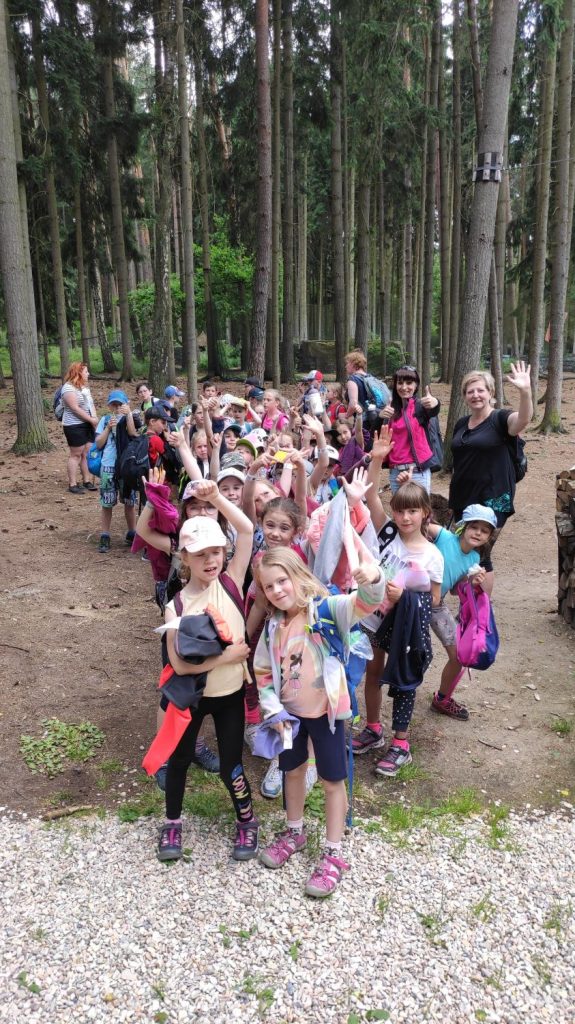 I ti nejmenší z naší školy se vydali na školní výlet. První třída společně s kamarády druháky vyrazila do Městských lesů v Hradci Králové. Objednali jsme autobus i počasí a v pondělí 12. 6. 2023 jsme stáli připravení, plní očekávání, před školou. Pan řidič nás dovezl na okraj Městských lesů, řádně jsme se posílili svačinou a společně jsme se prošli na začátek Stezky siluet. V lese jsme hledali známá zvířátka, poslechli si zvuky ptáků a v cíli jsme našli Rytířské hradiště. Areál hradiště jsme dostatečně prošmejdili a zahráli jsme si v něm hru. Na výletě nás čekala i těžká práce – najít dřevo, přinést ho a rozdělat oheň. Vše se nám povedlo a dobře jsme se naobědvali. Na závěr se naše výprava přesunula do lanového parku Na Větvi, kde jsme nechali zbytek sil. Vyčerpaní a spokojení jsme nastoupili do autobusu, který nás odvezl zpět k naším rodičům.