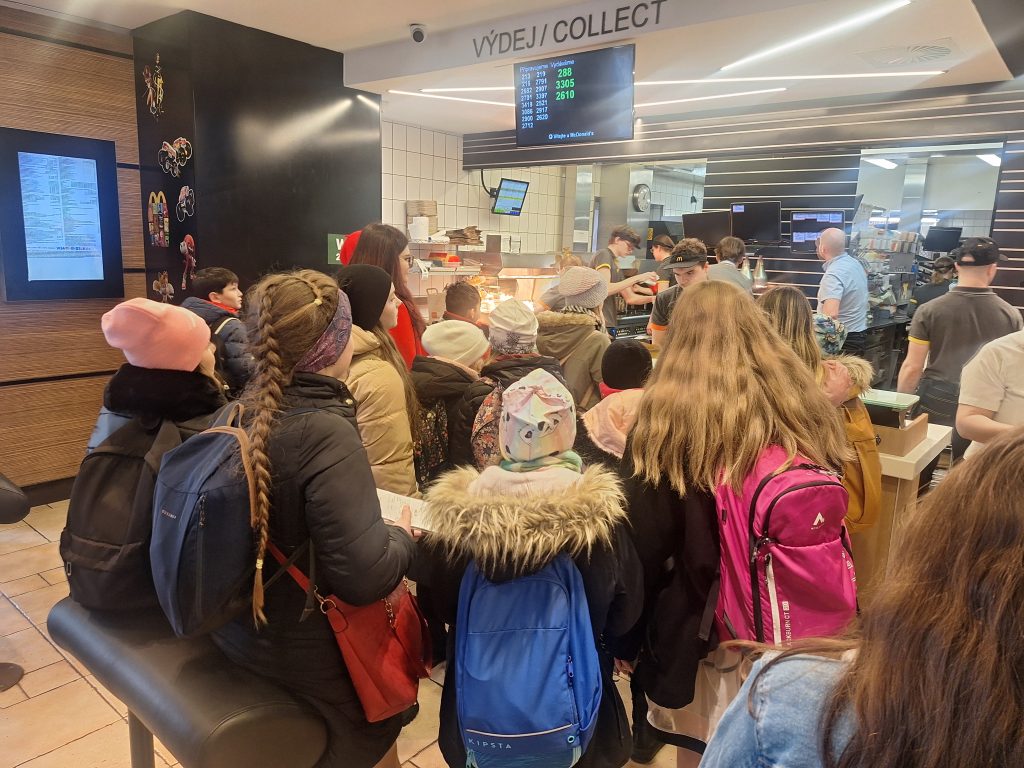 Po kulturním zážitku následovalo zasloužené občerstvení v restauraci McDonald’s, které dětem udělalo velkou radost. Poté jsme se projeli pražským metrem na nádraží, odkud nás vlak bezpečně odvezl zpět domů.