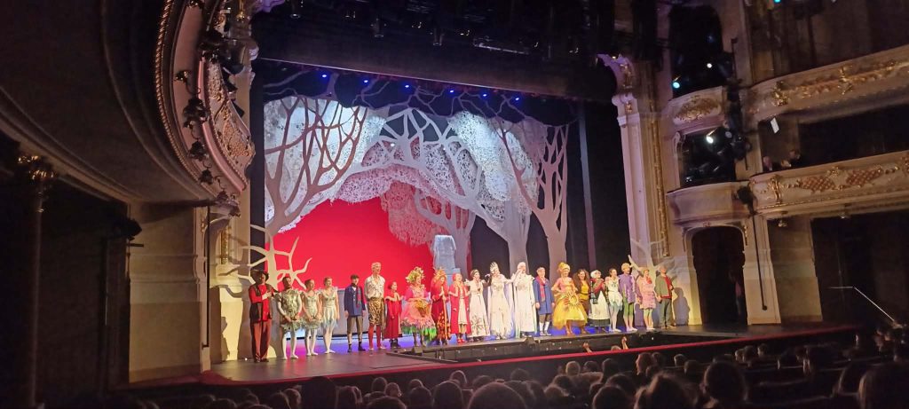 Příběh Sněhové královny všechny zaujal od první chvíle. Propracované kostýmy, působivé kulisy a skvělé herecké výkony vytvořily nezapomenutelný zážitek. Velkým lákadlem byl také orchestr sedící v orchestřišti, na který jsme se o přestávce mohli jít zblízka podívat.