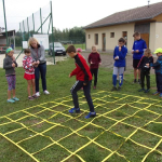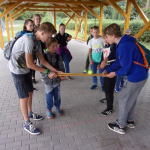 Při plnění úkolů na jednotlivých stanovištích se tak poznávaly děti navzájem, ale i děti a nové paní učitelky. Pro mnohé byly hádankou samotné názvy disciplín: Dva v tričku, Velké sucho, Minové pole, Pošli dál, Malíři, Okapy, Pavučina, Ruce bez práce, Hbité prsty, Rybáři, Biatlon, Nebezpečný náklad a Poslepu. Co se pod nimi skrývalo? Zkuste zapojit fantazii nebo se zeptat některého školáka.