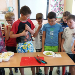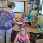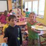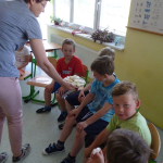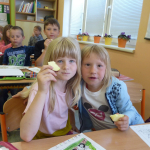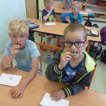 Žákům 1. stupně firma Bovys dováží ovoce do škol už několik let. Letos nám přivezli na ochutnávání kolem dvaceti různých druhů ovoce a zeleniny. Probíhalo to tak, že paní učitelka nakrájela každé ovoce nebo zeleninu na několik dílků, pak obešla celou třídu a každý si vzal. Komu chutnalo, mohl si přidat. Dozvěděla jsem se, že odrůdu jablka Granny Smith poprvé vypěstovala Maria Ann Smith, které se v jejím pozdějším věku říkalo Granny (babča) Smith a tuto přezdívku předala i svému milovanému ovoci. Také jsem se dozvěděla, že avokádu se říká krokodýlí hruška.