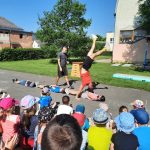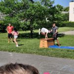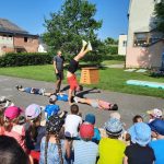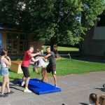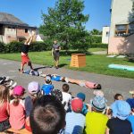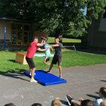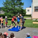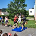 V pátek 18. června se sešli žáci druhého stupně na plácku před školou. V osm hodin začala akce parkour.