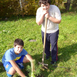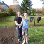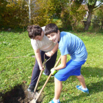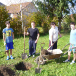 V pondělí 14. října měla naše třída odpoledne pracovní činnosti. Zasazovali jsme ovocné a jehličnaté stromy. Nejdříve jsme vykopali díry a potom vsazovali stromky a zasypali hlínou. Pořádně jsme vše zalili. A měli jsme radost, že máme hotovo.