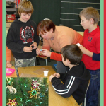 V pátek 25. 11. byl nádherný den, protože nám přišla paní Marešová pomáhat s vánočními ozdobami. Byly ze skla, takže jsme museli být opatrní. Vyráběli jsme 4 druhy a trvalo to 2 hodiny. Já jsem dělala hvězdu jednoduchou, někdo zas hvězdu magickou. Bylo to lehoučké a hezké. Na konci jsme se vyfotili. A za ten nádherný den chci poděkovat rodinnému centru KUK a především paní Marešové.