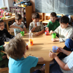 Tradiční „Noc ve školní družině“ se konala v noci z 3. 6. na 4. 6. 2016. Celkem 36 družinových dětí ze druhé, třetí a čtvrté třídy se sešlo kolem 19. hodiny. Prvňáci se spaní ve družině dočkají příští rok. Jako každý rok, ani tentokrát nás neminula stezka odvahy, kterou zvládli všichni, někteří šli dokonce úplně sami. Noční hra po škole byla náročnější na pohyb a přemýšlení, ale splnilo ji všech 8 družstev. Druhý den po snídani za námi přišel pan Pecháček, který nám představil 7 zvířátek, která jsme takhle naživo viděli poprvé. O každém z nich nám řekl mnoho zajímavostí. Viděli jsme kavku obecnou, jezevce lesního, lišku obecnou, psíka mývalovitého, blavora žlutého, kosmana zakrslého a kunu skalní. Nakonec jsme se dozvěděli výsledky noční hry, zhodnotili jsme celkový průběh akce a dostali jsme i malé odměny. Opět jsme si užili spoustu legrace a odnesli si pěkné zážitky.