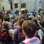 Paní průvodkyně už na nás čekala na Strahově, představila se nám a šli jsme. Nejdřív na Petřín do zrcadlového bludiště, kde jsme viděli legrační odrazy svých postav, hodně jsme se nasmáli. Z Petřína jsme se vydali na Pražský hrad. Viděli jsme výměnu hradní stráže, potom jsme šli na prohlídku – chrámu sv. Víta, baziliky sv. Jiří, Zlaté uličky. Dozvěděli jsme se spoustu zajímavých věcí. Potom jsme sešli po starých zámeckých schodech na Malostranské náměstí a naše cesta pokračovala na Karlův most. Tady byl hezký výhled na Prahu a Hrad a také jsme si mohli sáhnout na sochu Jana Nepomuckého a něco si přát (ale co, to nesmíme nikomu říct, jinak se nám to nesplní).