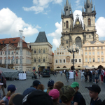 Dále jsme pokračovali na Staroměstské náměstí, a kdo se prodral velikým davem, viděl i orloj. Paní průvodkyně nám ještě něco důležitého vyprávěla o Týnském chrámu a pak se s námi rozloučila. My jsme tady nakoupili suvenýry a nějaké pamlsky a kolem Prašné brány a Obecního domu jsme došli na hlavní nádraží. Tam jsme počkali na náš autobus.