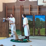 Prvního března se žáci naší školy šli podívat do tělocvičny na Staré pověsti české. Předvedla nám je šermířská skupina Pernštejni. Vyprávěli nám třeba o tom, jak Horymír s Šemíkem přeskočili hradby, nebo jak byla dívčí válka. Líbilo se mi, jak Bivoj ulovil hrůzostrašného kance. Těším se, až k nám zase přijedou.
