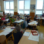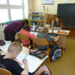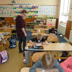 Na naší škole už je dobrou tradicí oslavit Den učitelů stylově. Proto v pátek 29. 3. žáci 9. třídy nechali nás, učitelky, v nižších třídách, „vydechnout“ a vyzkoušeli si stoupnout za katedru na 1. stupni. Jaké to bude dostat žákům co nejvíce informací do jejich chytrých hlaviček? Každý vylosoval třídu a vyučovací předmět – co a kde bude učit. Většina učila dvě hodiny v různých třídách. Nikdo nic nepodcenil. Vzorně se připravovali, jako by chtěli soutěžit, kdo bude lepší. Sbírali nápady, vyráběli pomůcky, připravovali odměny.