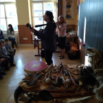 Poté následovaly ukázky indiánských předmětů, které nesmějí chybět v žádném „indiánském týpíčku“. Děti s údivem hleděly na různé kuriozity patřící do indiánské výbavy. Mluvené slovo pana Kocůrka provázely otázky, na které naše děti dokázaly bravurně odpovědět.