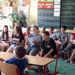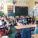 První červnové úterý nás přišli navštívit do páté třídy budoucí prvňáčci ze školky. Páťáci si pro ně přichystali čtení z knížky Deník kocourka Modroočka a spoustu soutěží.? Budoucí školáčci se moc snažili, hledali písmenka- jídlo pro kočičky, hledali blešky v textu a vyzkoušeli svoji odvahu a postřeh při soutěžích. Jejich velcí kamarádi také zaslouží pochvalu a poděkování za svoji práci a čas.?