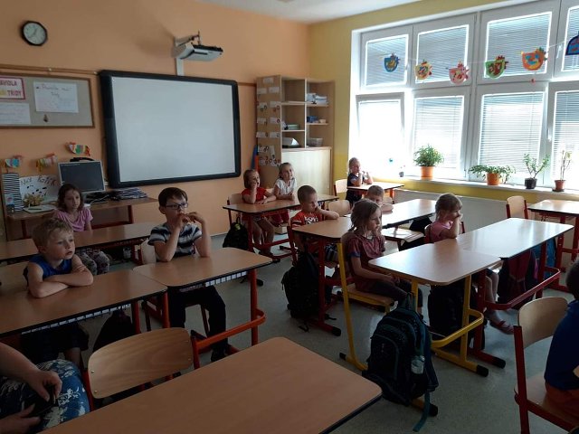 První červnové úterý nás přišli navštívit do páté třídy budoucí prvňáčci ze školky. Páťáci si pro ně přichystali čtení z knížky Deník kocourka Modroočka a spoustu soutěží.? Budoucí školáčci se moc snažili, hledali písmenka- jídlo pro kočičky, hledali blešky v textu a vyzkoušeli svoji odvahu a postřeh při soutěžích. Jejich velcí kamarádi také zaslouží pochvalu a poděkování za svoji práci a čas.?