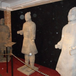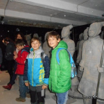 Vyměřený čas rychle utekl a my se museli přesunout do Machoňovy pasáže, kde je vystavena terakotová armáda. Z úvodního dokumentu jsme se dozvěděli, že 1. císař dynastie Čchin – 3. století před naším letopočtem – si nechal postavit v místě nazvaném Lishan (Čína) hrobku. Areál zabírá plochu 46 km2 a je v něm pod zemí armáda více než 8 000 terakotových válečníků z období kolem roku 220 před naším letopočtem. Sochy, původně barevné, vyrobili z pálené hlíny. Bojovníci jsou vysocí 175 – 187 cm, každý je unikátní, v přirozeném postoji s rysy a gesty charakteristickými pro hodnost a funkci vojáků, důstojníků a generálů. Terakotovou armádu objevili 29. března 1974, když místní rolníci kopali studnu a narazili při tom na zlomky keramických plastik.