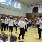 Naše vánoční besídka na téma Žijeme hudbou se konala 20. 12. v tělocvičně. Připravovali jsme se dlouho a pečlivě, ale stejně jsme byli velmi nervózní. Ráno jsme tělocvičnu vyzdobili a netrpělivě čekali na příchod hostů, poroty a žáků 5. – 8. třídy. O půl desáté vše a už se před tím nedalo nikam schovat, tak Vánoční nás strach opustil. Každá třída měla připravené vystoupení a všem se velmi povedlo. My jsme organizovali soutěže, scénky a taneční vystoupení. V tělocvičně panovala skvělá nálada. Každý odcházel spokojený. My, přestože jsme po programu museli ještě tělocvičnu uklidit, jsme se smáli úlevou a všichni jsme už ve vzduchu cítili Vánoce.