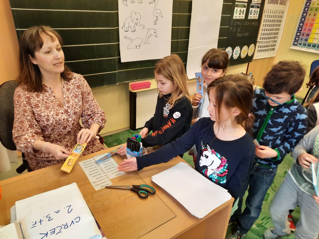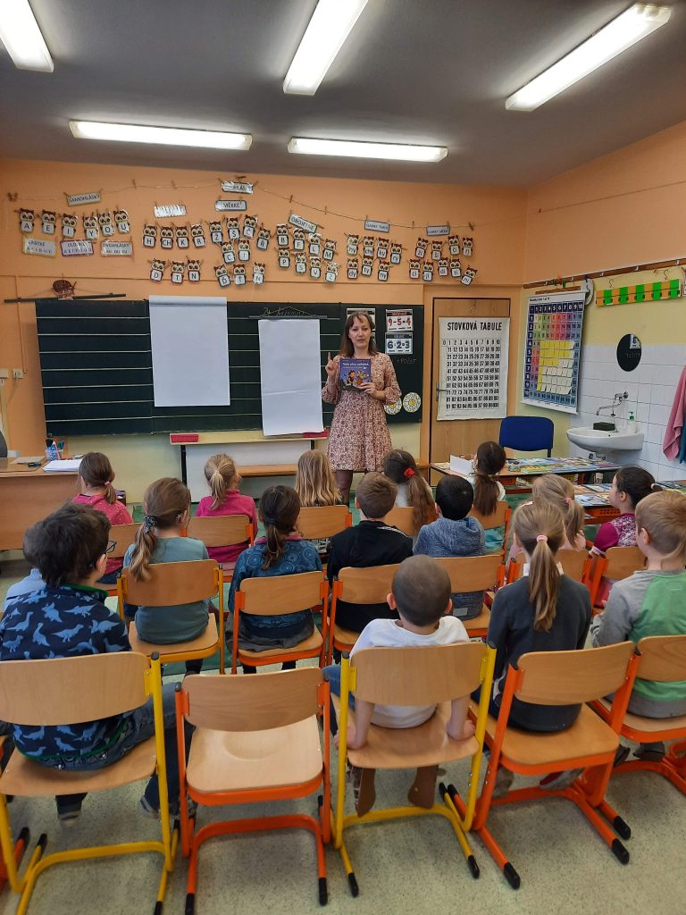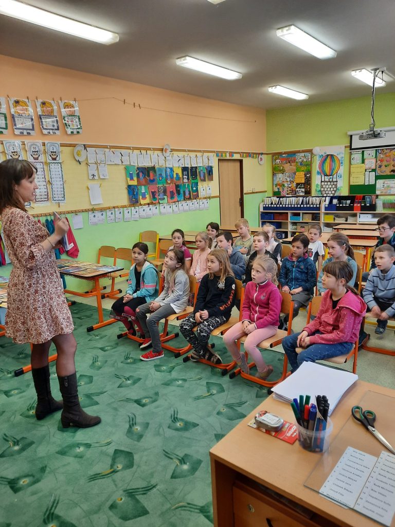 Dne 24. března jsme oslavili „MĚSÍC KNIHY“ besedou s paní ilustrátorkou Veronikou Balcarovou. Děti se dozvěděly, jak se rodí knížka a kdo se na jejím vzniku podílí. Paní Balcarová děti seznámila se svou tvorbou. Kromě knih přispívá svými kouzelnými obrázky také do různých časopisů, vytváří pexesa, vystřihovánky aj. Beseda proběhla ve velmi příjemné atmosféře, děti pozorně naslouchaly. Ti nejšikovnější si domů odnesli malou pozornost. Besedu ukončila malá autogramiáda. Uvidíme, kolik dětí paní Balcarová inspirovala k povolání ilustrátora.