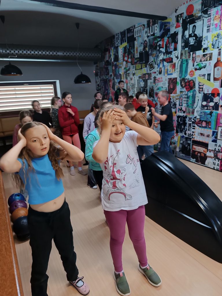 Včerejšek byl SUPER! My, žáci 4. třídy, jsme se vydali na slíbený bowling do Lanškouna. Nejprve jsme nasytili bříško slíbenou zmrzlinou, potom nás čekala hodina hry. Ve volných chvilkách jsme mohli chodit k baru pro občerstvení a také jsme si zahráli stolní fotbálek. V bowlingu byl z kluků nejlepší Tomáš a z holek Julča. Všichni jsme si to moc užili.