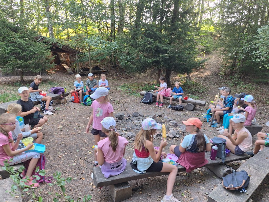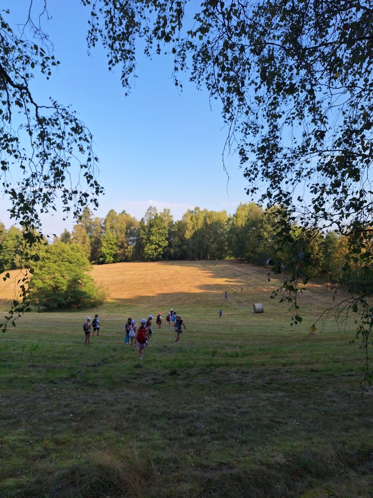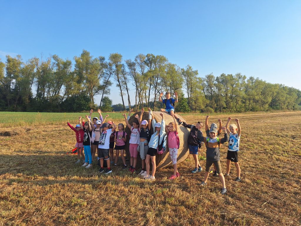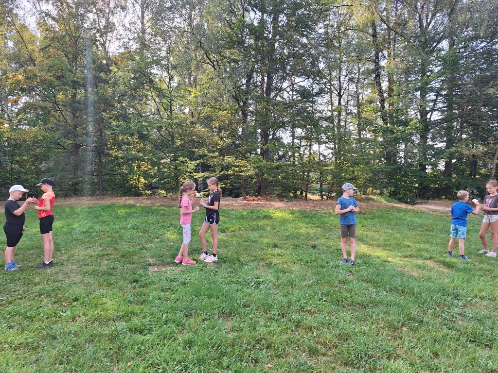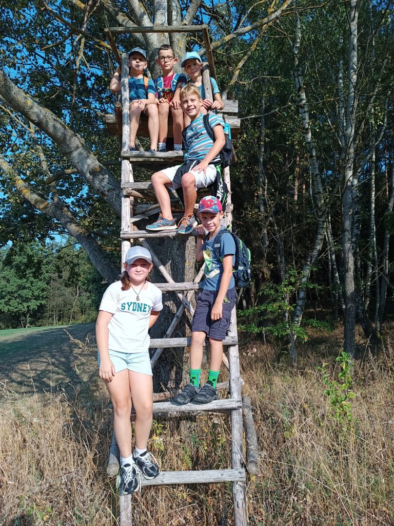 Dne 5. 9. se žáci 3. a 5. třídy společně vydali na dobrodružnou cestu plnou zábavy a objevování. Třeťáci připravili pro své kamarády páťáky šipkovanou. Šipky vymýšleli z přírodních materiálů a moc je to bavilo. Cíl šipkované jsme našli na krásném místě, kde jsme si udělali pauzu, nasvačili se a zahráli si pár her. Poté jsme se vydali rovnou za nosem k chovné stanici bažantů. Rovnou za nosem znamenalo projít hustým lesem, kukuřičným polem a vyzkoušet si skok přes potok. 😉 Děkujeme panu Maixnerovi za ukázku chovu bažantů. Na cestě zpátky do školy jsme se ještě zastavili u výběhu koní, kteří se nám předvedli v celé své kráse. Celý den byl plný smíchu, přátelství a zážitků z přírody, které si budeme dlouho pamatovat.