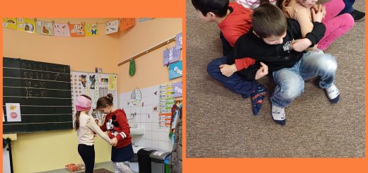 Máme za sebou téměř další měsíc školy. Už se dá říci, že jsme si zase navykli na školní práci a jsme čím dál šikovnější ve psaní, čtení i počítání. Zkoušíme pískat na flétničku a jde to báječně. Učíme se ve škole i v muzeu, kde nám vyprávěli o pravěku a užíváme si to i po škole v kině nebo na bowlingu.