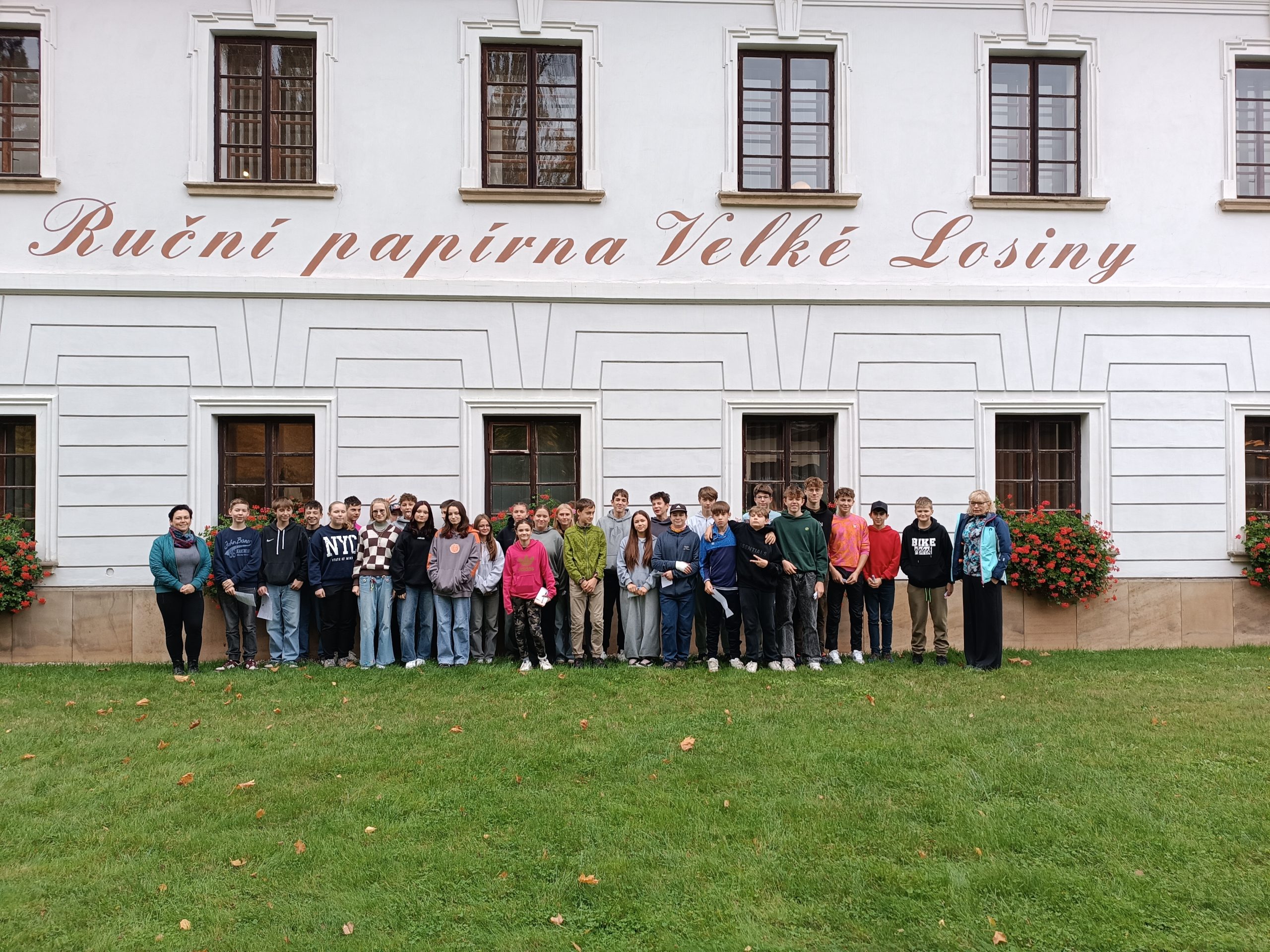 Žáci osmého a devátého ročníku se ve čtvrtek 16. října vydali na podzimní poznávací výlet, který spojil historii s moderní technikou. Nejprve navštívili ruční papírnu ve Velkých Losinách, kde se seznámili s tradiční výrobou papíru. Dozvěděli se, jak se papír vyráběl před stovkami let, a sami si mohli vyzkoušet vytvořit vlastní arch ručního papíru.