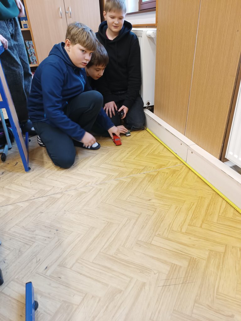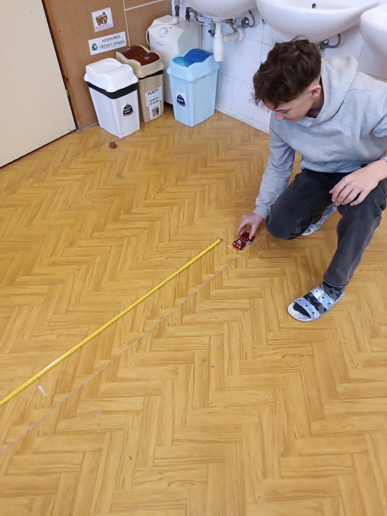 Kdo má rychlejší auto? To dnes zjišťovali sedmáci při hodině fyziky. Bavilo je to, pracovali samostatně a byli moc šikovní.