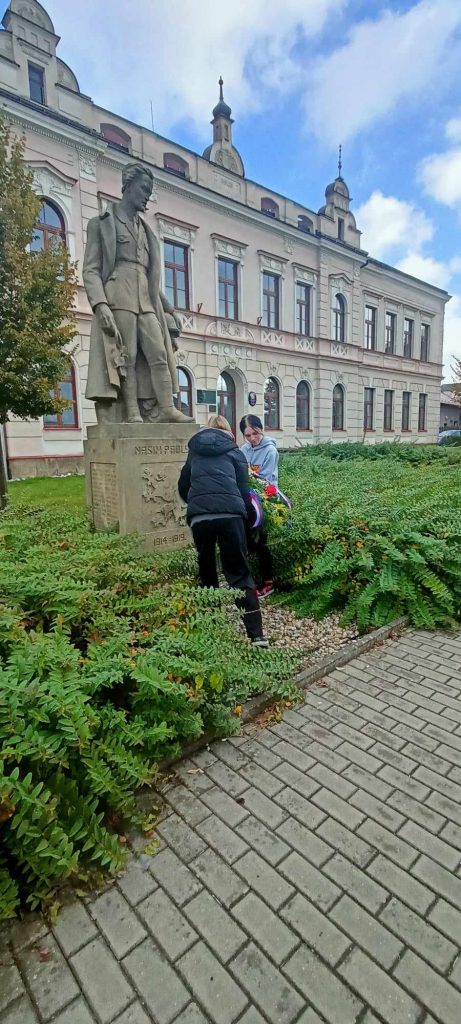Poslední hodinu před podzimními prázdninami žáci 9. třídy přednesli proslov, položili věnec a zapálenou svíčku na pomník padlých hrdinů z 1. světové války, který stojí před naší školou.