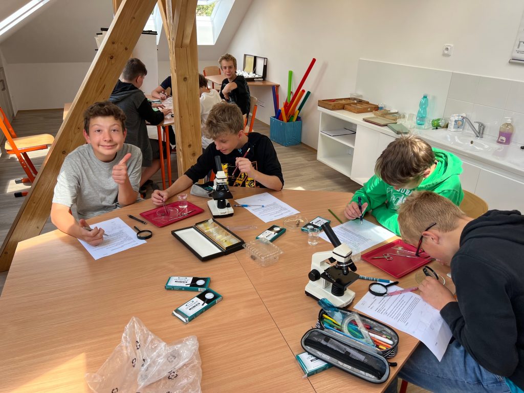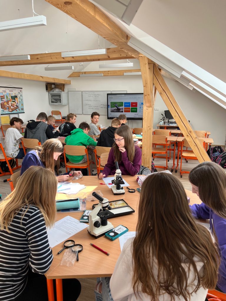 Do hodin přírodopisu neodmyslitelně patří i laboratorní cvičení. Děti se v 6. třídě seznámily s různými metodami zkoumání přírody a jedna z nich je i mikroskopování. V pondělí se uskutečnilo závěrečné laboratorní cvičení na téma Hmyzí svět, kde si děti mohly procvičit již získané vědomosti o stavbě hmyzího těla, ekologii a rozmanitosti hmyzího světa. Využily také svých dovedností při zhotovení nativních preparátů vybraných částí hmyzího těla.