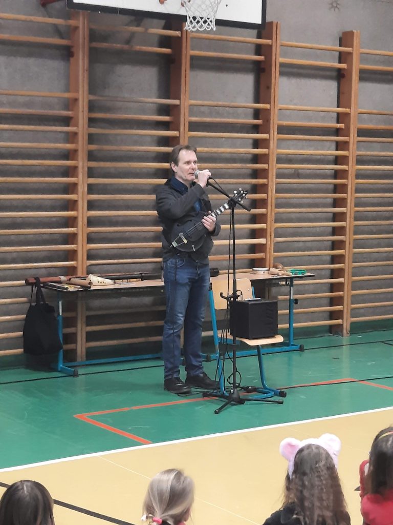 V naší škole jsme dne 27. 2. 2023 uvítali významného hosta. Hudebník Radim Zenkl nás pozval k virtuální cestě kolem světa se zastávkami na všech osídlených světadílech, kde nám zahrál ukázky tradiční lidové hudby na místní nástroje.