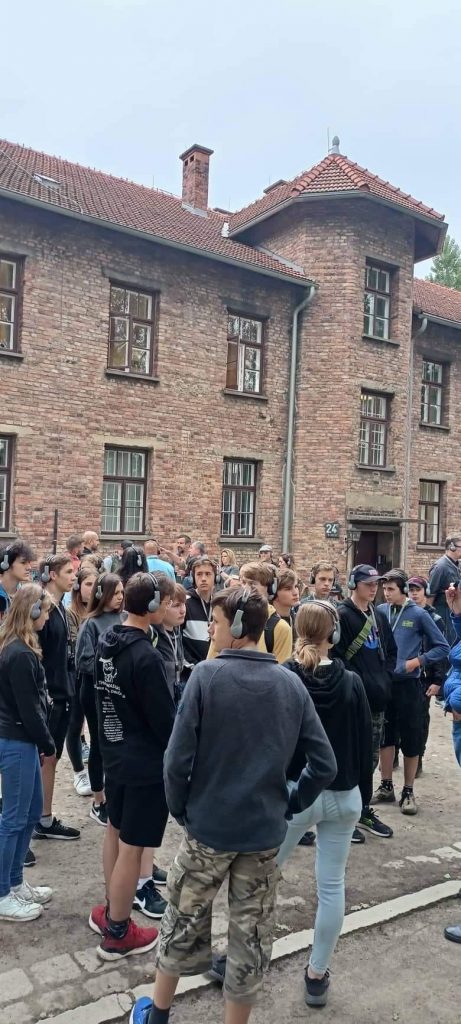 Za druhé světové války si mnoho lidí prožilo peklo, většina zaplatila i svým životem, a proto je důležité si historii stále připomínat. Rozhodli jsme se tedy vyrazit do Osvětimi v pátek 17. 6. 2022, abychom se dozvěděli něco nového a hlavně abychom viděli, co zažívali lidé, kteří tam byli deportováni. Sraz jsme měli brzy ráno, ve 4:15 hodin, abychom vše v klidu stíhali a včas se vrátili domů. Když jsme dorazili na místo, museli jsme projít kontrolou, co vše máme u sebe. Poté si nás vyzvedl průvodce, který nás prováděl celým areálem. Byl to Polák, ale mluvil dobře česky, takže jsme mu vše hezky rozuměli. Procházeli jsme místy, kde se odehrávaly všechny ty hrůzy. Podívali jsme se do ,,domů“, kde vězni přežívali. Viděli jsme spoustu nehezkých věcí, například zasklenou místnost zaplněnou dvěma tunami ženských vlasů. V jiné podobné místnosti byly kufry s nápisy, odkud majitelé pocházeli, jinde ležely vystavené boty i botičky malých dětí. Byl to hrozný pocit. Po prohlídce Auschwitzu jsme se přesunuli autobusem do Auschwitz-Birkenau. Nejprve nás uvítal typický pohled na koleje, kde nám průvodce ukazoval, že pouhý pohyb ruky rozhodoval o životech. Jeden směr byla cesta na práci a druhý směr znamenal cestu do nebe. Toto místo bylo hodně rozlehlé a my se vydali po stopách bývalých vězňů. Dívali jsme se např. kde spali a poslouchali vyprávění o lidském utrpení. Nakonec jsme se s průvodcem rozloučili, poděkovali jsme a vydali se na cestu. Byl to výjimečný zážitek, taková možnost se jen tak nenaskytne. Hodně mě překvapilo, kolik lidí toto místo navštívilo. Myslím si, že by tam měl jet každý za svůj život alespoň jednou, aby věděl, že se tohle už nikdy nesmí opakovat.