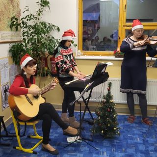 Čím je potěšili? Připravili si pro ně soutěže, kde si mohli malí kamarádi rozkrájet jablíčka, hodit koulí do komína, najít rozdíly, hádat dárečky pod sněhem, slalomovat...