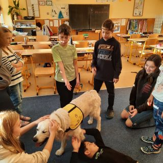 Ve středu měli v páté třídě nezvyklou návštěvu. První dvě hodiny se  totiž učili spolu s dvěma pejsky  Sýčkem a Lentilkou. Dozvěděli se, jak psi lidem...