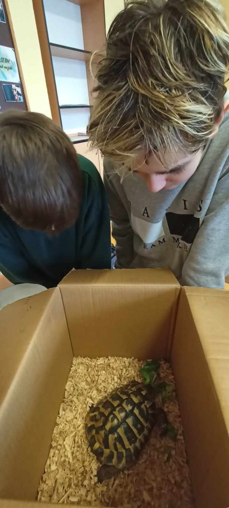 V hodinách Pěstitelských prací a chovatelství se žáci 7. třídy seznámili s chovem želv zelenavých Arnošta a Deryla. Během výuky se dozvěděli spoustu zajímavých informací o tom, co želvy potřebují k životu, jak správně pečovat o jejich terárium a jakou stravu mají rády.