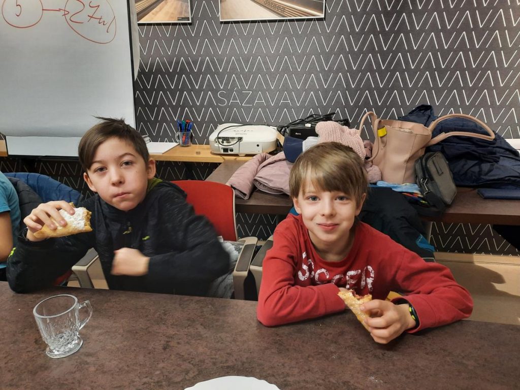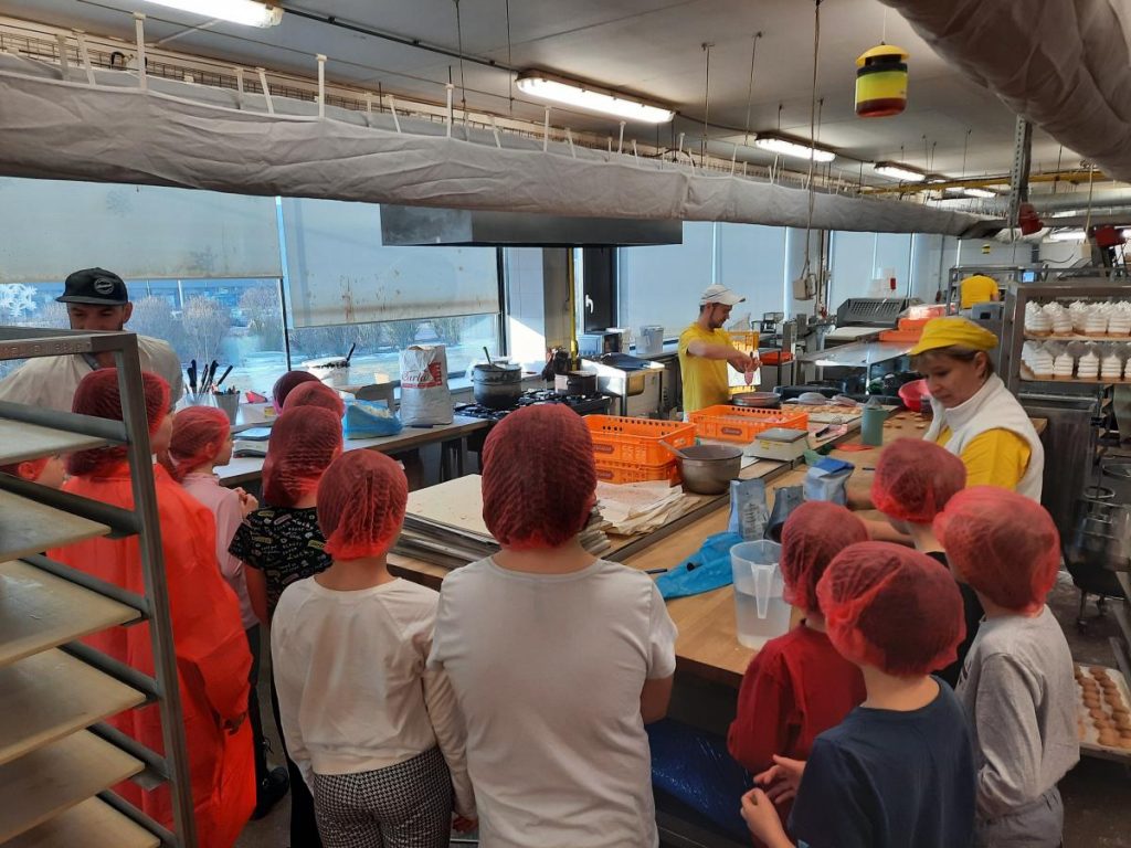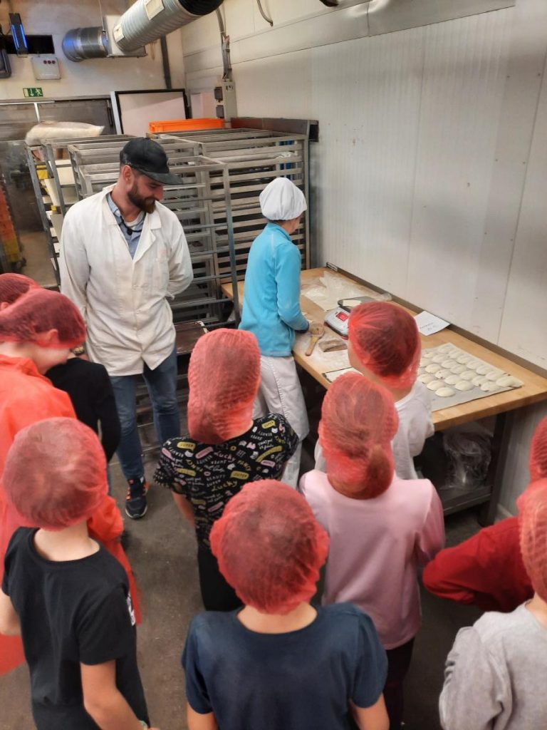 A pak jsme ucítili tu vůní! Koláče, rohlíky, zákusky…Jaká je vůbec cesta takového rohlíku, než se do něho můžeme zakousnout? Jak se umichá těsto, kde kyne, jak vypadá taková pec a na kolik stupňů ji musí vyhřát? Spousta otázek, spousta informací a dobrota nakonec. Taková byla naše návštěva v pekařství Sázava.