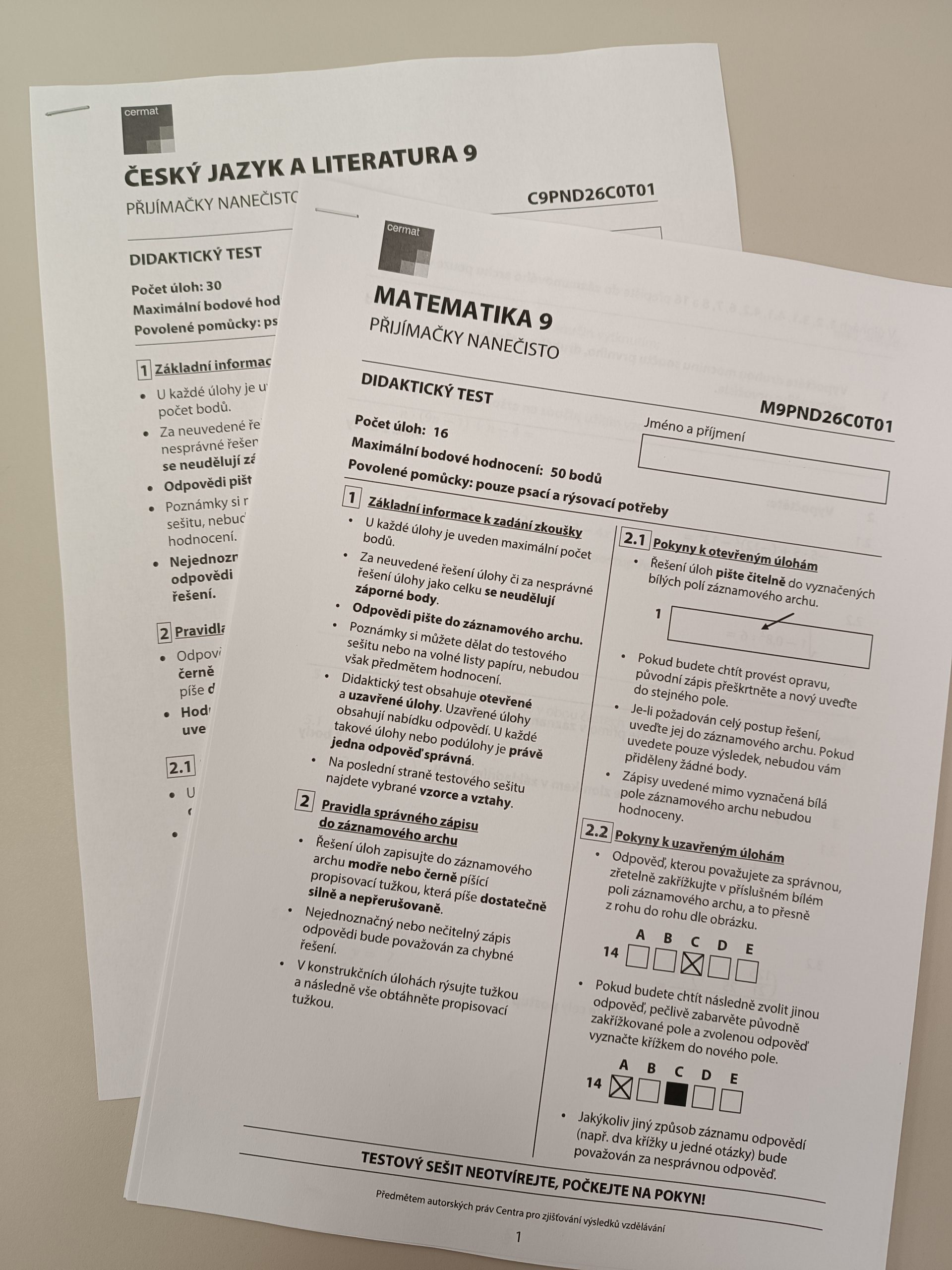 Žáci si nově mohli vyzkoušet také pilotní verzi přijímacích zkoušek z anglického jazyka. Zkoušky nanečisto jim pomohly získat cenné zkušenosti a lépe se připravit na ostrý termín přijímacích zkoušek, který je 10. a 13. dubna 2026.