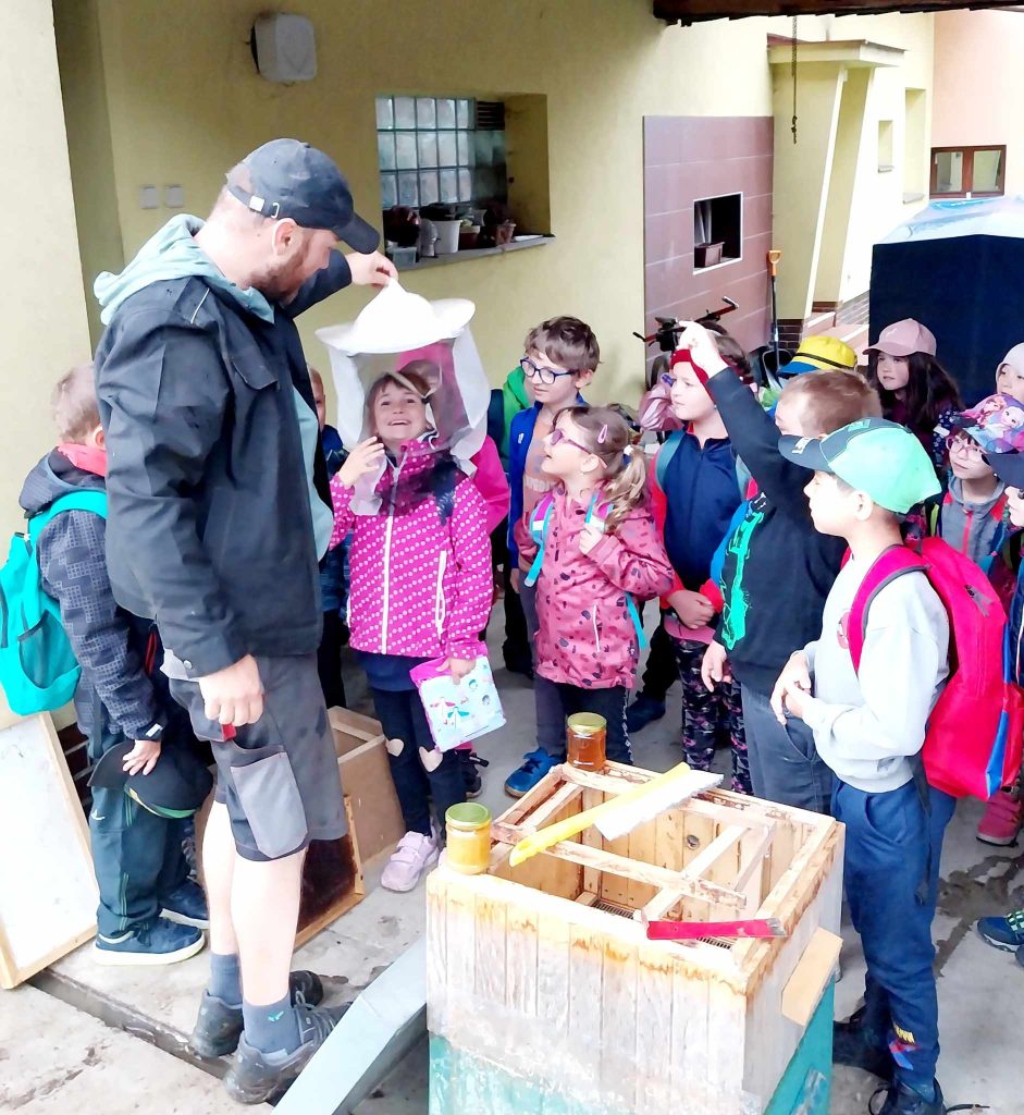 Počasí nám moc nepřálo, ale stejně jsme se vydali na putování za životem včel k panu Dostálovi. Děti byly netrpělivé a představovaly si, co je čeká. Cíl cesty jsme velice dobře poznali. Pan Dostál nás čekal s připravenými rekvizitami a povídání mohlo začít. Děti se dozvěděly o obyvatelích úlu, jakou mají dané včelky práci, kdo pečuje o matku, kdo se stará o bezpečnost jejich domova. Jak vzniká med a jaká dlouhá cesta je s jeho výrobou spojena. Ochutnávka medu byla sladkou perličkou naší návštěvy. Než jsme se rozloučili, zašli jsme se podívat, za býky na pastvu. Kdo ví, třeba si příště budeme povídat právě o nich.