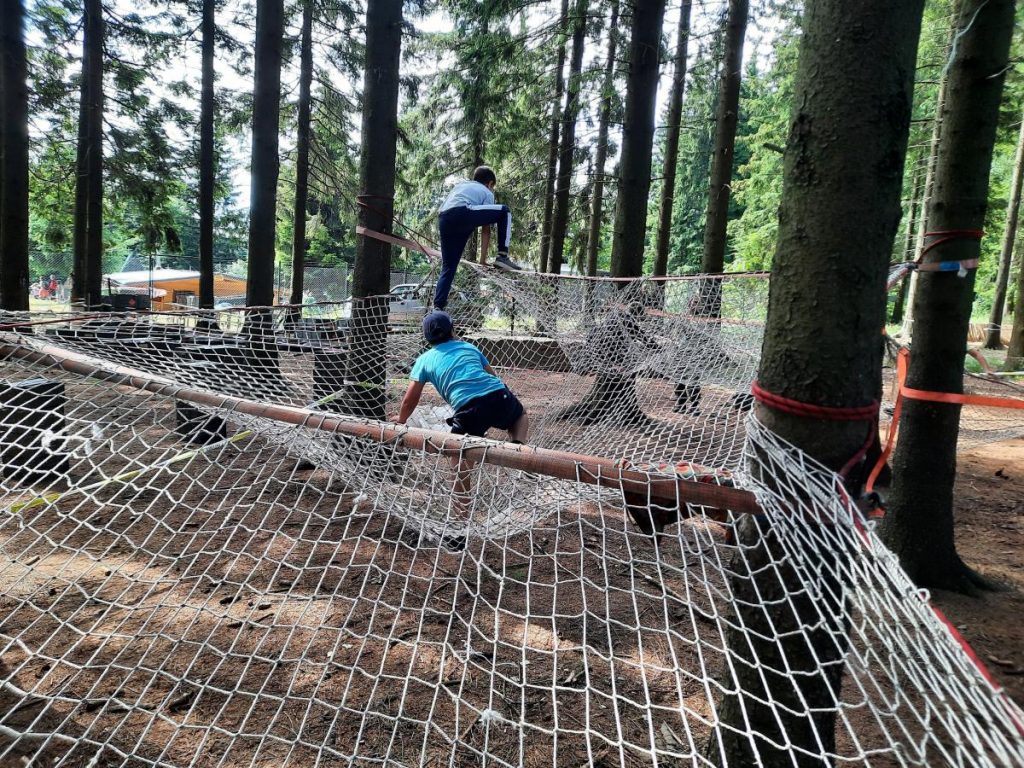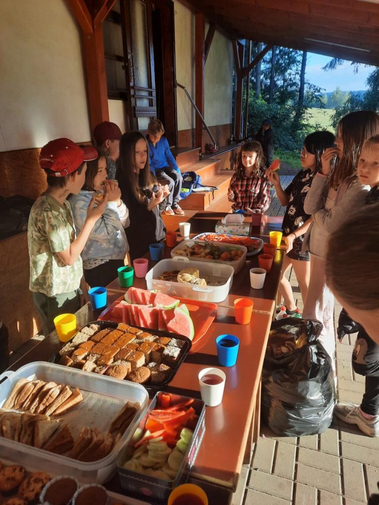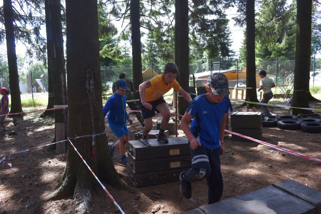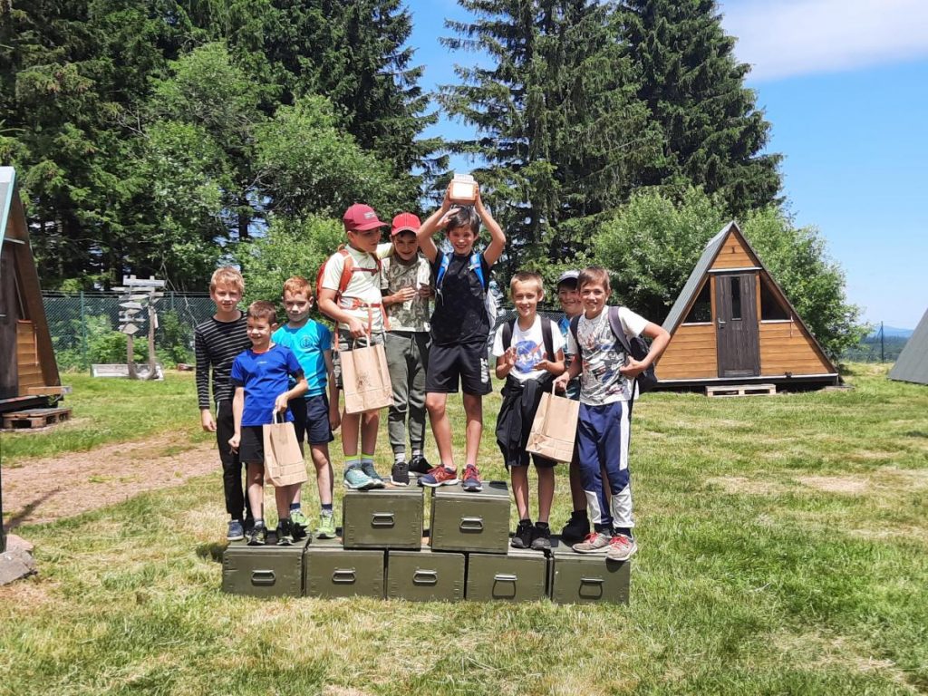 Noc byla tichá a nás čekal další nabitý den. Vstávat, uklidit, umýt, nasnídat, sbalit batůžek a vyrazit. Kam? Do jídelny pro výtečný oběd a pak hurá autobusem na den dětí u pevnosti Adam. Na Adamu děti čekal pravý a nefalšovaný vojenský branný závod. Startovaly ve skupinách po třech. Všichni se snažili, stříleli, přelézali, podlézali, plazili se, zneškodňovali minu a ošetřovali zraněné. Do cíle všichni přiběhli spokojeni a šťastni. Třešničkou na dortu byly stupně vítězů. Honza Kot, Boban Zezulka a Pája Okrouhlický vybojovali krásné 3. místo. Jenže to stále ještě nebylo vše. Družstvo BORCI, složené z Jirky a Matyáše Svobody, spolu s Ondrou Markem, nejenže vyhráli závod ve své kategorii, ale obsadili i příčku nejvyšší. Závod doběhli v absolutně nejkratším čase. Do školy si odvezli putovní bunkr, který se pokusí příští rok obhájit a přivést znovu zpět. Držme jim pěsti. Cestou zpět si někteří únavou zdřímli, aby měli sílu na úklid chaty. Vše jsme společně zvládli a další noc strávíme každý ve své posteli.