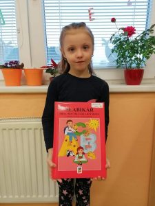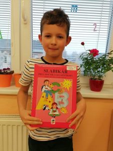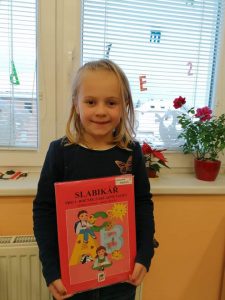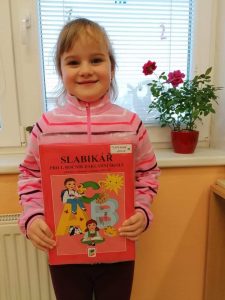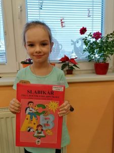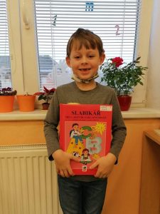 Od začátku školního roku děti pracovaly s Živou abecedou, ale Slabikář, to už je opravdové čtení. Na jeho slavnostní předávání jsme se všichni těšili. Bohužel nás v daném termínu kvůli nemocem chodilo do školy málo. Domluvili jsme se, že na kamarády počkáme. Po týdnu – dne 29. listopadu – se to téměř podařilo. Radovali jsme se nejen ze Slabikáře, ale i z toho, že jsme zase skoro všichni spolu. Nikomu nevadilo, že už jsme pár stránek ze Slabikáře přečetli.