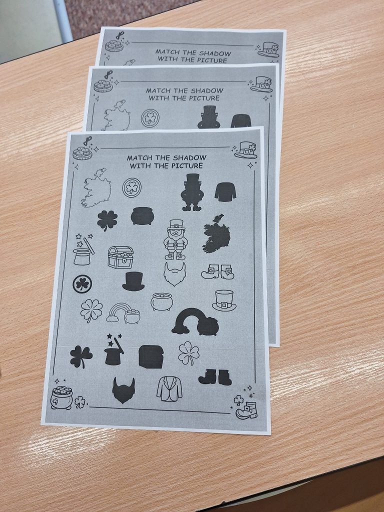 Výuka probíhala formou pestrých aktivit — žáci plnili tajenky, domino, trimino, přesmyčky a vybarvovali tematické obrázky. Velký úspěch měla také úniková hra, při níž děti hledaly legendární hrnec plný zlata.