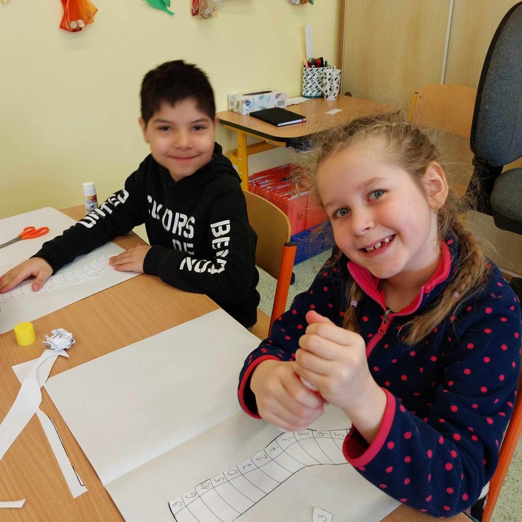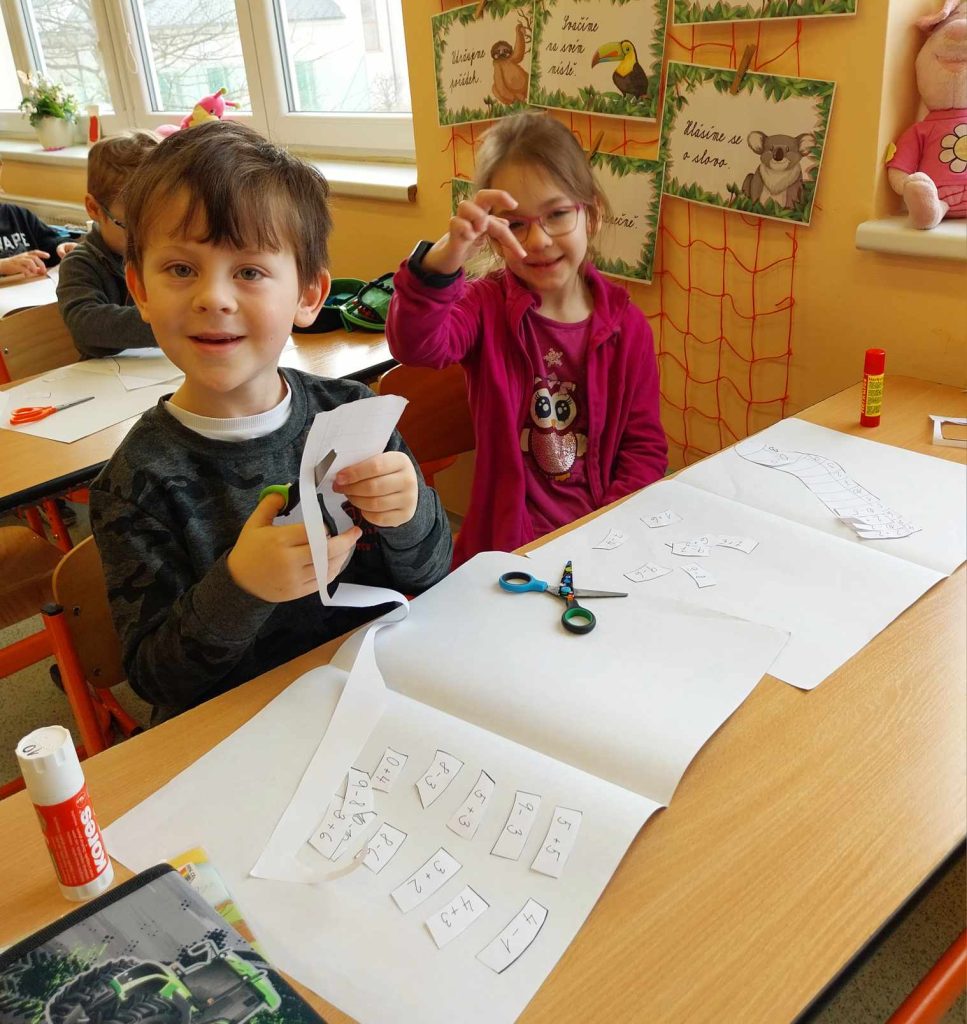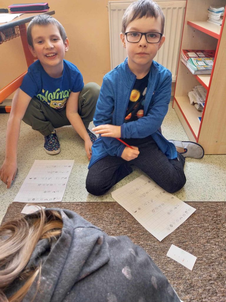 Prvňáčci se s tímto termínem a lidmi s ním spojeném seznámili právě dnes. Na začátku dne jsme si ukázali, jaké krásné různorodé ponožky oblékají naše nožky. Ať už byly barevné, vzorované, květinové nebo zvířátkové, všechny nám na nožky skvěle padly. Postoupili jsme dále a povídali si o lidech s Downovým syndromem. Děti pozorně poslouchaly, ptaly se a tvořily. Počítaly ponožkově a šifrovaly slova. Byly to těžké úkoly, ale bravůrně si se vším poradily.