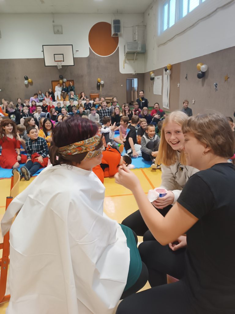 Na poslední školní den v roce 2023 připravili žáci 9. třídy vánoční besídku pro 5. – 8. třídu. Letošní téma besídky „Star Dance“ poskytlo žákům široký prostor pro kreativitu. Nejvíce okouzlující a dojemné vystoupení předvedli malí umělci z 5. třídy, kteří si za své vystoupení odnesli dort. Nejúspěšnější třídou v soutěžním zápolení byla 8. třída, která vyhrála poukázku na bowling. Žáci 9. třídy doplnili program vlastními originálními scénkami i tancem. Celá besídka se nesla v poklidné atmosféře. Přejme si, aby nás takové okamžiky spojovaly i v nadcházejícím roce 2024.