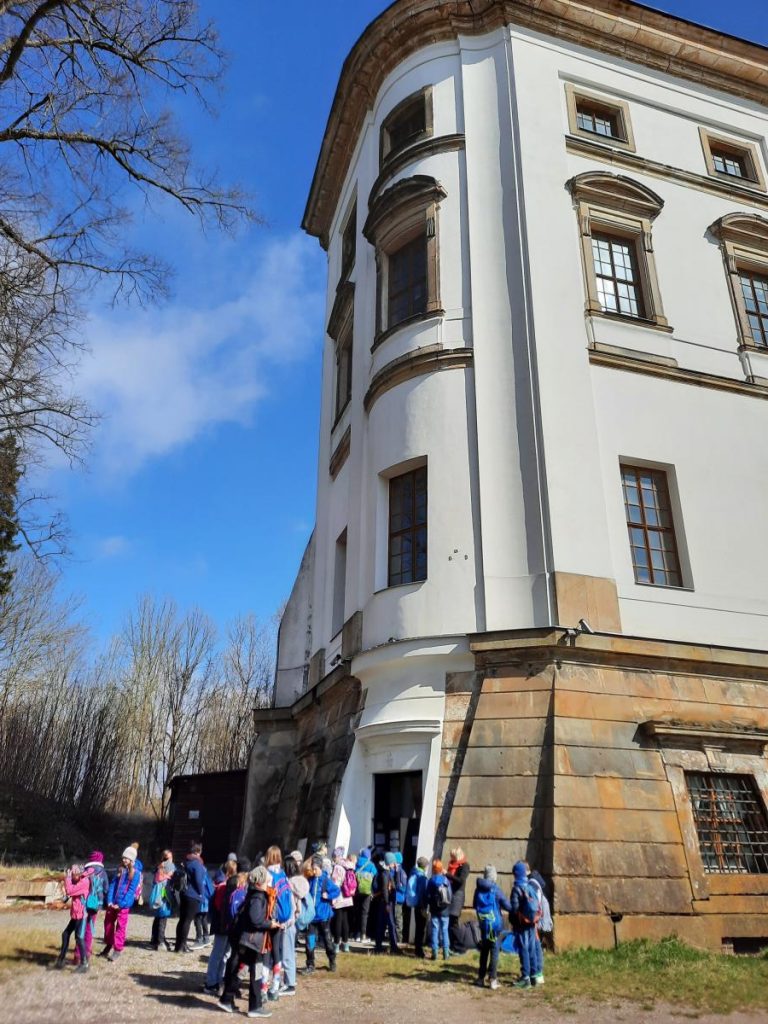 Po pohádce zamířili prvňáčci a druháčci zpátky do Čermné, a třetí a čtvrtá třída pokračovala pěknou procházkou na Nový zámek u Rudoltic. Počasí nám přálo, cesta ubíhala, a za půl hodinky nás přivítala paní Krasava Šerkopová – kastelánka Zámečku. Po prohlídce věže a sklepení, která byla doprovázena zajímavým výkladem paní Šerkopové, jsme se vydali zpátky na cestu do školy. Tímto bychom chtěli poděkovat paní Šerkopové za příjemně strávený čas.