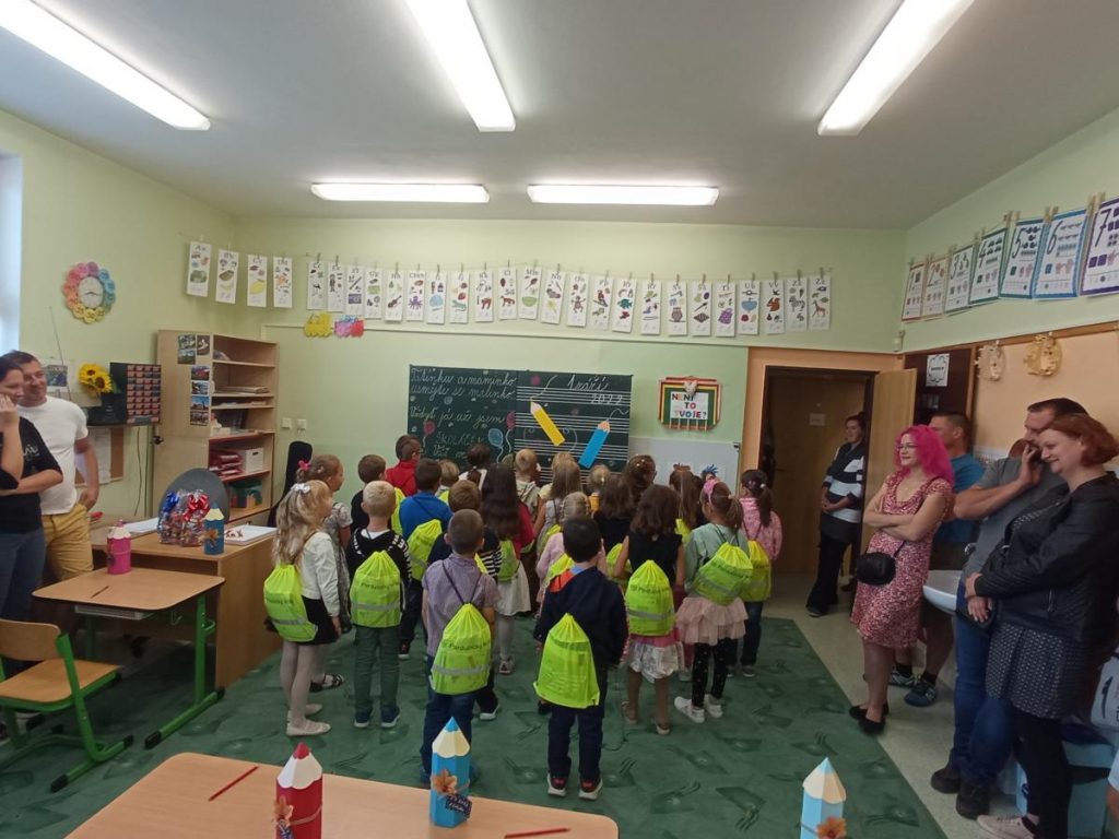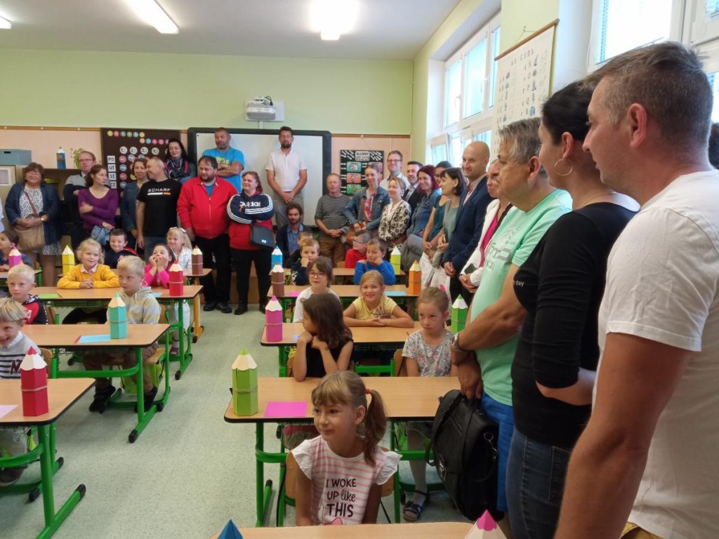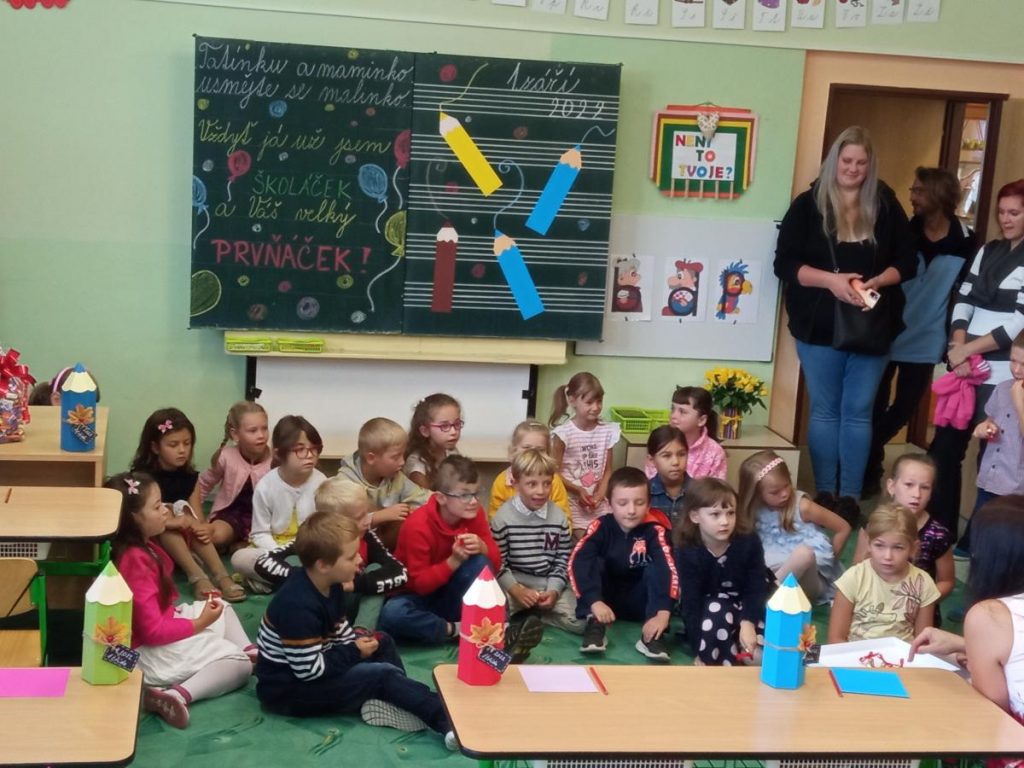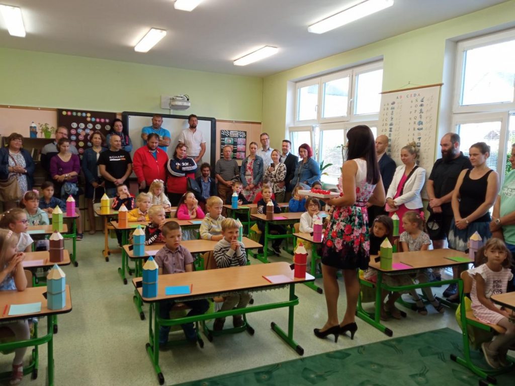 Čtvrtek 1. září byl slavnostním dnem pro 25 prvňáčků, kteří poprvé usedli do školních lavic. Přišli s úsměvem a vměstnali se do malé třídy i se svými nejbližšími, kteří je na jejich první cestě do školy doprovodili. Prvňáčky ve škole přivítala paní ředitelka i pan starosta městysu, od kterého děti dostaly obrovské pytlíky bonbónů, na které se jim už sbíhají sliny. Malí školáčci zvládli všechny činnosti s nadhledem a jiskřičkou v oku. Všichni doufáme, že se nám společně bude dařit a za deset měsíců uděláme obrovský kus práce.
