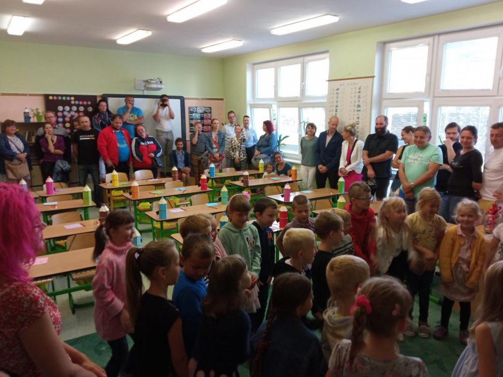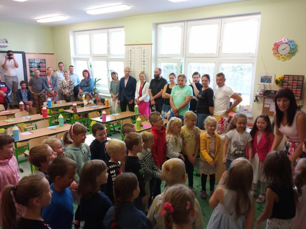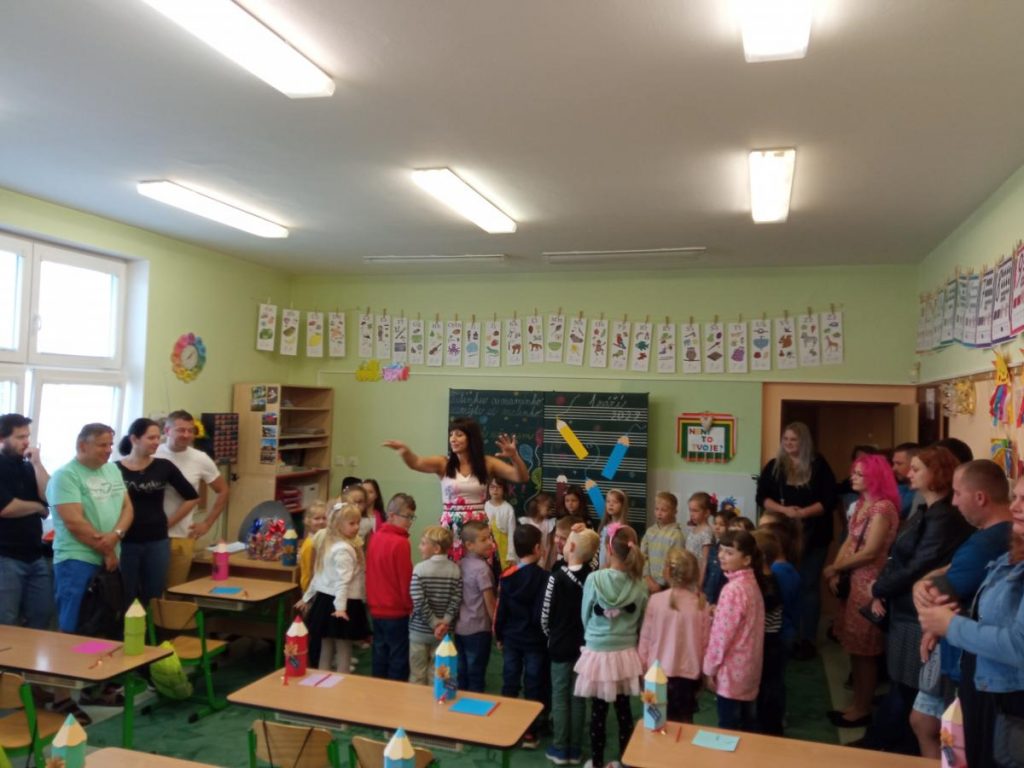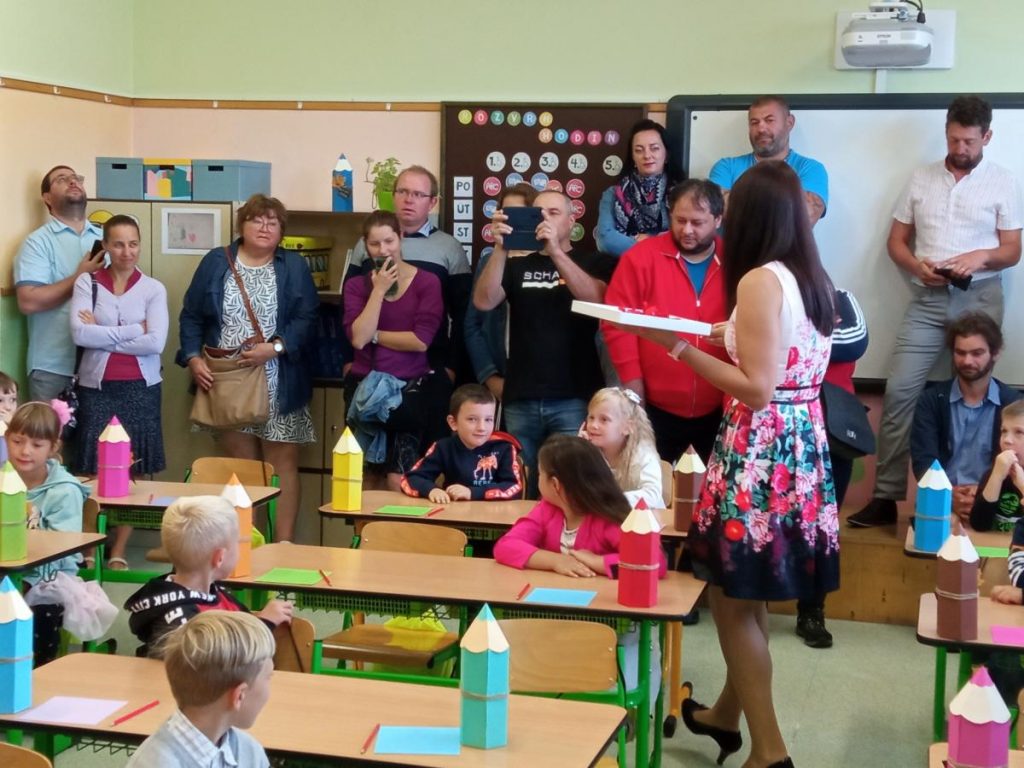 Čtvrtek 1. září byl slavnostním dnem pro 25 prvňáčků, kteří poprvé usedli do školních lavic. Přišli s úsměvem a vměstnali se do malé třídy i se svými nejbližšími, kteří je na jejich první cestě do školy doprovodili. Prvňáčky ve škole přivítala paní ředitelka i pan starosta městysu, od kterého děti dostaly obrovské pytlíky bonbónů, na které se jim už sbíhají sliny. Malí školáčci zvládli všechny činnosti s nadhledem a jiskřičkou v oku. Všichni doufáme, že se nám společně bude dařit a za deset měsíců uděláme obrovský kus práce.