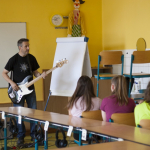 Pan Frangos nás dlouhodobě navštěvuje a snaží se nám zpestřit hodiny anglického jazyka. Ve čtvrtek 24.6.2021 jsme měli závěrečnou hodinu, která proběhla moc zajímavě. Pan Frangos si přinesl elektrickou kytaru a předvedl nám několik hudebních stylů. Přesvědčili jsme se, že mu to jde opravdu bravurně a hudba je jeho veliký koníček. Moc se nám to líbilo. Na závěr mu patřilo velké poděkování a samozřejmě nechyběla ani společná fotka.