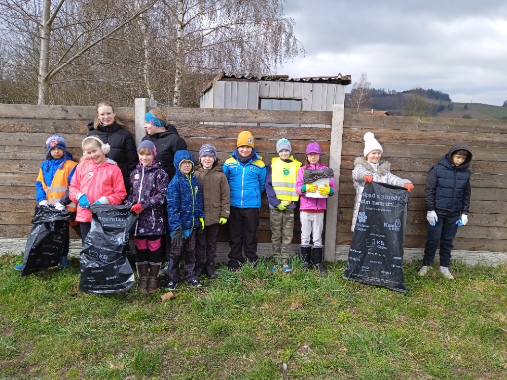 Do celorepublikové akce Ukliďme Česko! se zapojili i žáci naší školy, kteří se v pátek 27. března vydali uklízet obec a její okolí. S velkým nasazením sbírali odpadky, které hyzdí přírodu i veřejný prostor.